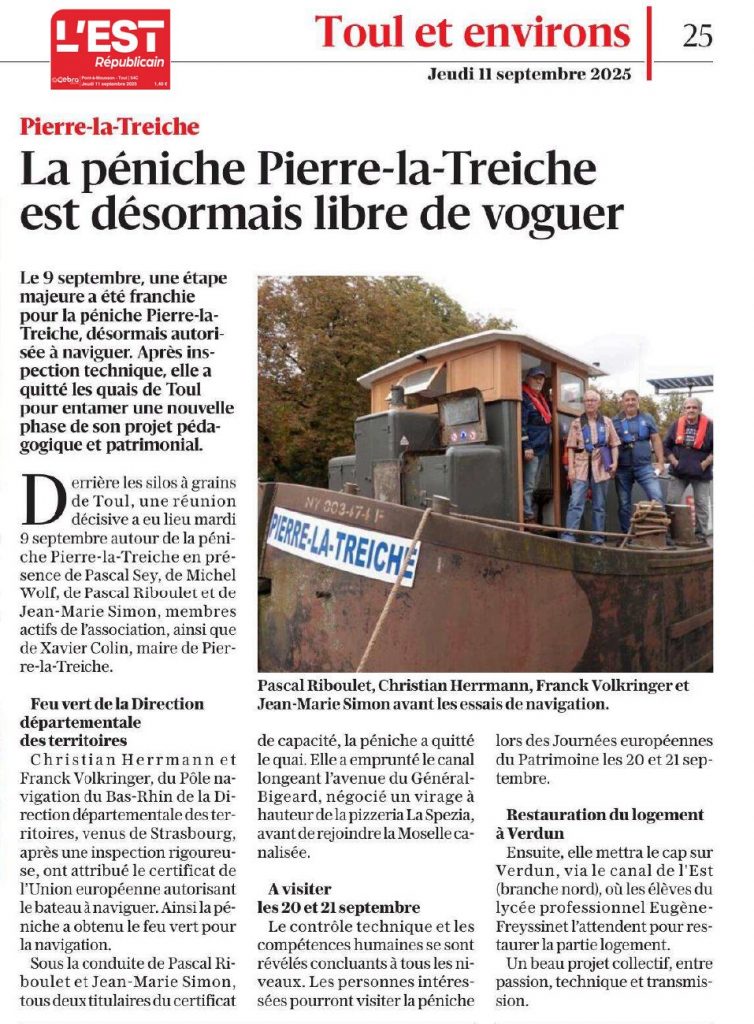 Et n’oubliez pas ! L’association « La péniche PIERRE-LA-TREICHE » tiendra son Assemblée Générale samedi 4 octobre 2025 à 10 heures à Pierre-la-Treiche, salle Poussot.